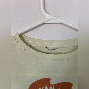 Excellent condition other than pinhole in neckline where tag was —- DOES NOT GO THROUGH SHIRT TO OTHER SIDE. (See last photo)