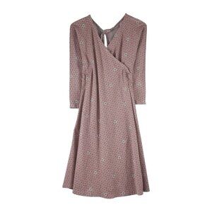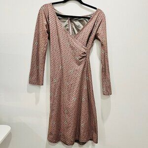 Patagonia Long Sleeve Organic Cotton Knee Length Laurel Stretch Wrap V Dress