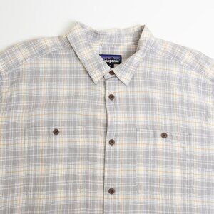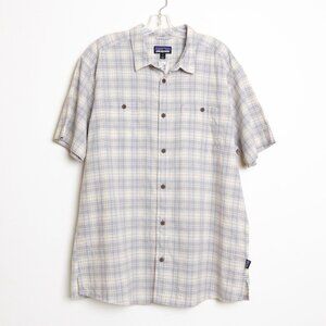 Patagonia Mens Back Step Collared Shirt Beyond Horizons Salt Grey Hemp Cotton XL