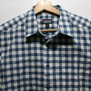 Patagonia Mens Small Organic Cotton Blue Short Sleeve Button Up Plaid Shirt