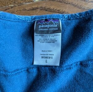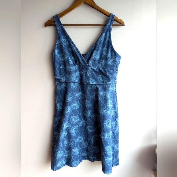 Patagonia Organic Cotton Blue Womens Mini Sun Dress Sz L Empire Waist Babydoll