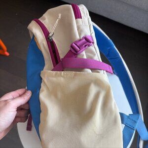 Fits laptops up to 15" (padded sleeve included). 3 compartments for organization. Breathable back panel and side pockets. Measurements: 18" x 12" x 6.5”. Some marks of use, but overall in good condition.