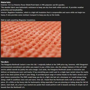 Softshell technical jacket can be worn almost as a hardhsell. It is weather resistant thanks to the Polartec Power Shield Pro fabric which is also super durable and resistant to abrasions. The Patagonia Northwall Jacket has built in insulation (wall-to-wall carpeting) - hard on the outside and soft and warm on the inside.