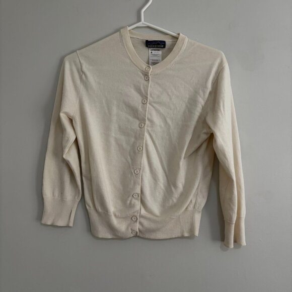 The cardigan is in good condition however the last two images show a few small marks on the sweater. There is a small pen dot on one of the sleeves (second last picture) and two small stains on the back should (last picture).