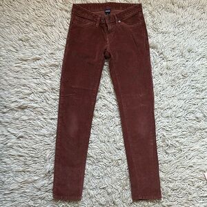 Comfortable & functional Patagonia pants in essential, neutral black. These pants are fitted through the hips and things and relaxed through lower legs. They are perfect for all your adventures in the great outdoors. Lightweight nylon/spandex offers active stretch for exceptional comfort and unrestricted range of motion. These pants are in good preloved condition with a small spot on the lower leg as shown. Patagonia size chart attached.