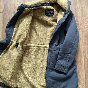 Excellent barely used condition blue Patagonia women’s jacket, size small, in navy. Perfect for fall and spring! Cozy lining and multiple drawstrings to be able to customize shape once on. Style is Insulated Prairie Dawn Parka.