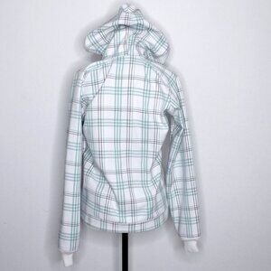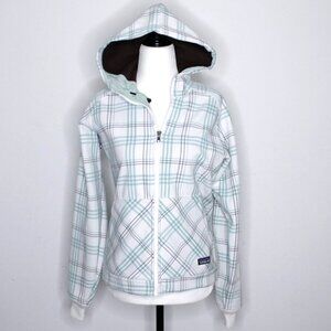 Patagonia Women's White Green Plaid Hooded Jacket Size S