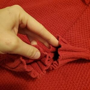 Patagonia turtleneck long sleeves sweater. Knit. Ribbed on neck. Red. Size L, see pictures for measurements. Subtle stain at the front as seen on pictures. Little piling around the sweater. Blend of recycled cotton, recycled polyester and other fibers. No rip, no hole. Non smoking house.
