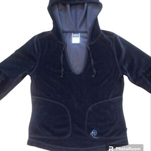 Patagonia everyday comfortable, soft Black velvet sweater with a cap and 2 pockets.