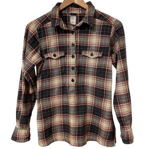 Patagonia Pullover plaid flannel shirt. This super soft shirt features 1/4 button-down front, chest pockets, side slits and branded buttons. In very good pre-owned condition. Content: 100% organic cotton Approx. Measurements flat lay: Pit to pit: 17” Shoulders: 15” Length: 24”
