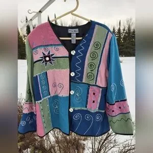 Embrace vibrant style with a Indigo Moon brand Women's blazer. Featuring a unique multicolor design with pink, blue, and green hues.Perfect for making a bold fashion statement. Excellent condition.