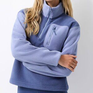 Patch pocket mock neck polar fleece sweater blue/indigo