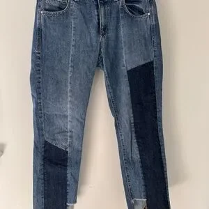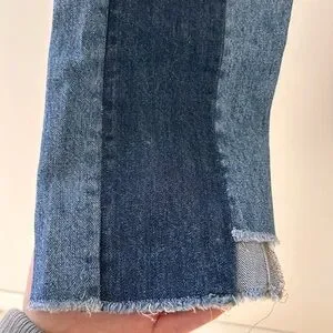 Stylish patchwork denim jeans with a unique design. Perfect for casual wear.