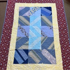 Patchwork Quilt with Red and Blue Accents Machine Homemade 55x40" Cabin Boho
