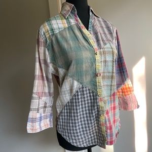 Patchwork fitted button front shirt.