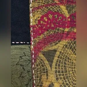 Multi fabric pants with heavy stitch work and side pocket.