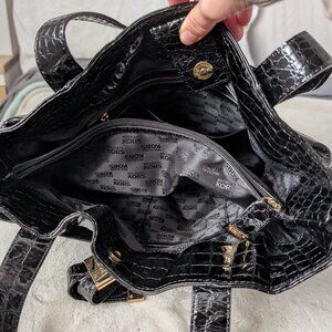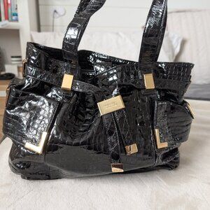 Gold hardware on a gorgeous alligator print patent leather Michael Kors purse. The purse is in very good condition aside from some scratches on the gold hardware.