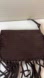 This Patricia Nash Crossbody bag is stunning. It is different. The fringe detail which is very much on trend is very well done. It’s also a rich dark chocolate brown colour which is also on trend.It has an adjustable leather strap. Gold tone hardware. The back exterior has a snap magnetic closure pocket with beautiful fabric that looks like art. It has a front flap magnetic snap closure. The underside of the flap is a beautiful tan suede. The interior is a beautiful fabric with a zipper pocket and two slip pockets. There is a pocket in front of the main opening that has credit card slots and an ID window in leather. It’s a stunning bag. The exterior material is like a soft micro suede. This is the kind of bag that a celebrity would wear. It’s in very excellent condition. Check out my five star ratings. It’s 12 inch width by 9 1/2 inch height by 3 1/2 inch dimension. Thank you for your interest in buying sustainably and helping out our beautiful 🌎