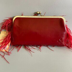 Patricia Nash Ruby Red Leather Ostrich Feather Frame Bag NWT