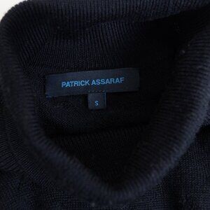 Designed by Patrick Assaraf, this classic turtleneck is knit from 100% extrafine merino wool for breathable warmth and a refined drape. The dark navy hue and understated texture make it an easy, polished layer under blazers, coats, or on its own.