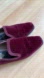 Elegant deep red velvet loafers by Patrick Cox. Perfect for stylish occasions.