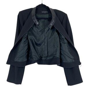 Patrick Mendez France wool blend black cropped jacket zipper size 2