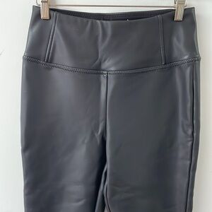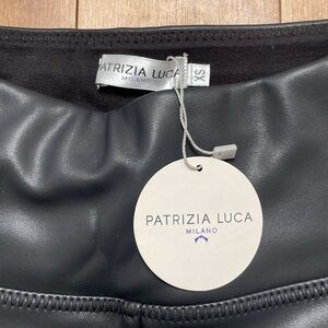 Patrizia Luca Milano faux leather leggings pants XS black shiny fleece lined NWT