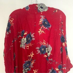 Patrons Of Peace Red Blue Floral Rayon Kimono Open Front M