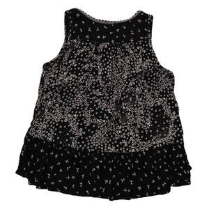 Elegant sleeveless blouse with floral design. Perfect for casual outings. This blouse is hi in the front and low in the back.