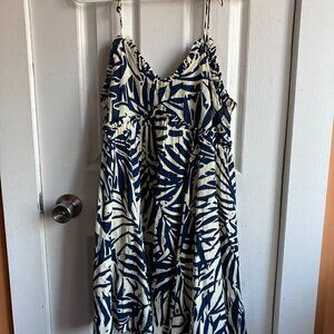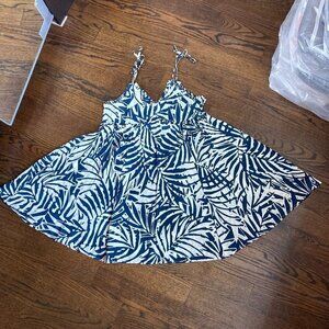 Empire style dress size XS- Very swingy- color is more accurate in first 4 pics. Pics where dress is on the floor hs natural lighting onit hence color may seem whiter in background then the true color- taken like that so you can see how much swing it has.