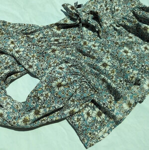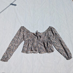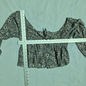 Patrons of Peace Tie Front Long Bishop Sleeve Crop Top Woman's XS Floral