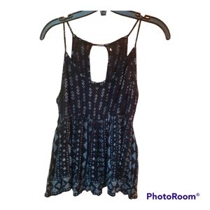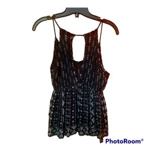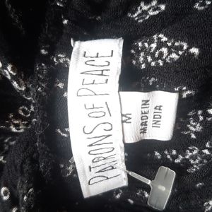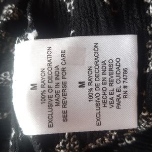 Pretty cute!! Black and white pattern, swing style, open back. Size M rayon. 21" shoulder strap to hem, 15" armpit to armpit and 12" under bust approximately.