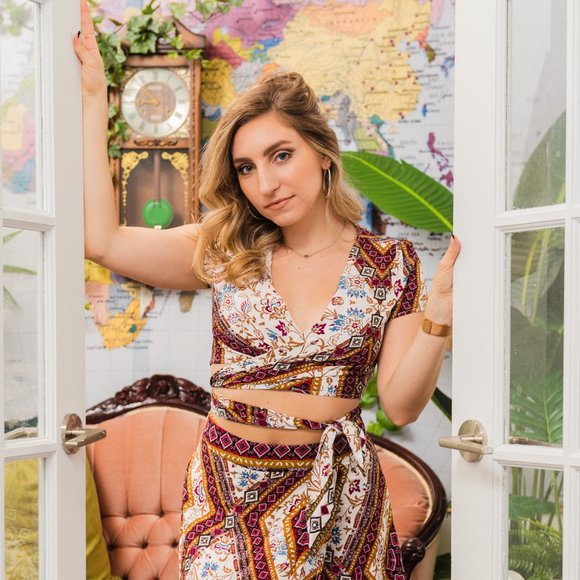 Pattern Two Piece Set (Tie UP Top & Skirt) SHEIN - Brand New, Never worn. The shirt ties up on the bottom. It is such a pretty outfit.