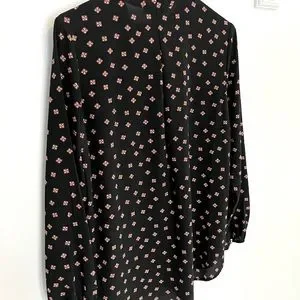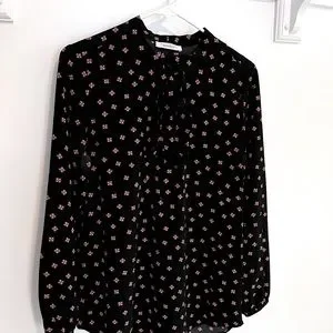 Black pattered long sleeve blouse by ‘Mandee’ in size M. Keyhole neckline with large bow detail. Very classy, quality material. In perfect condition.