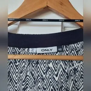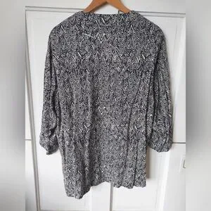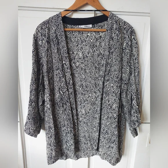 Bold black and white cover up. Light weight, great for spring and summer or layering in the fall.