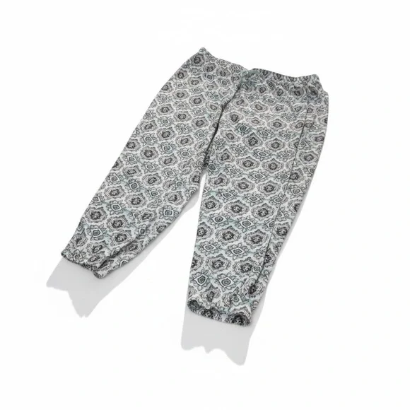 Stylish jogger pants with a black and blue pattern. Comfortable and trendy.