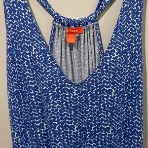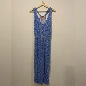 Blue and White Pattern Maxi Dress • Stretchy Material and Stretchy Waist • 14 Inch Waist • 16.5 Inches Pit to Pit • 44 Inches Pit to Bottom