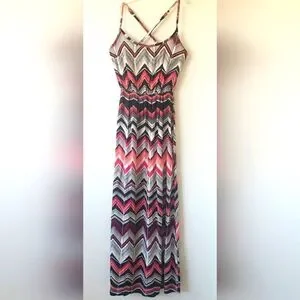 Patterned maxi dress with adjustable shoulder straps.