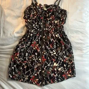 Fun and flirty mini dress. Dark blue with beautiful pattern. Functional front zipper, pockets, adjustable straps. Lightweight, perfect for warm weather. Great condition.