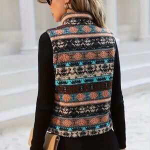 Stay stylish and warm with this multicolor patterned vest. Perfect for layering, it features a vibrant design that adds a pop of color to any outfit.