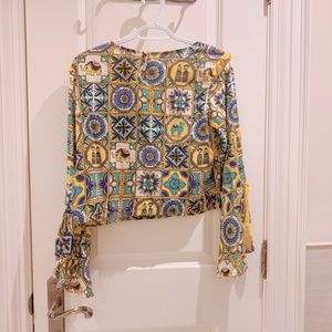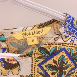 Blue and Yellow Patterned Top from Global Desi. 100% Viscose.