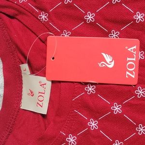 NWT red patterned top. Size large. Rolled cuff. Pit to pit approx 16in. Length approx 22in.