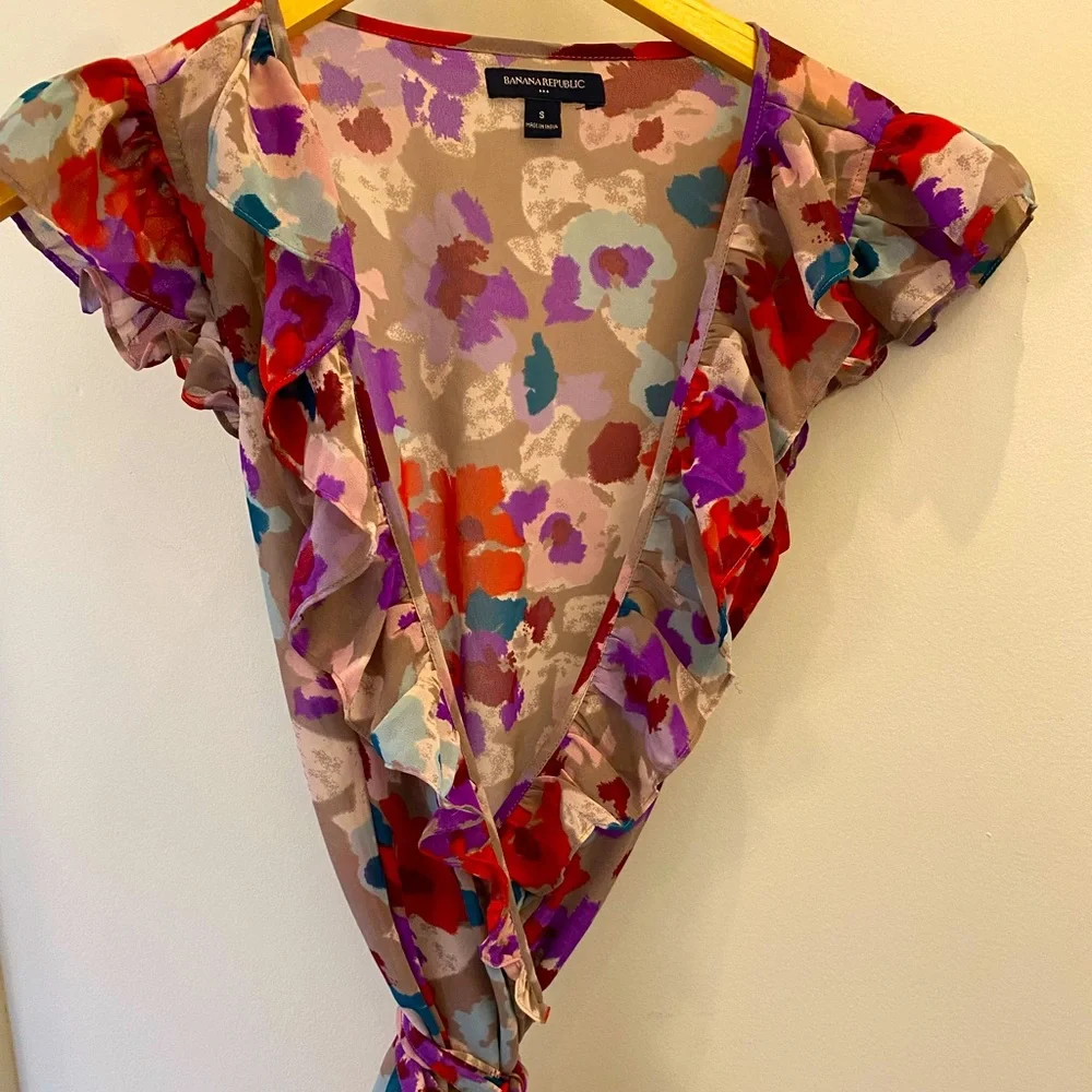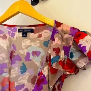 Banana Republic patterned sheer wrap blouse with tied. Size small