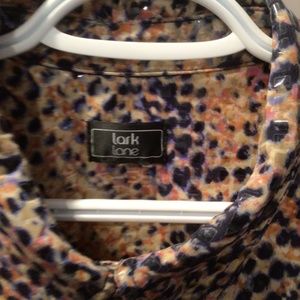 Unique patent-like fabrication makes this short/bomber jacket a standout. Snaps down front, pockets, band along bottom. Not lined.
