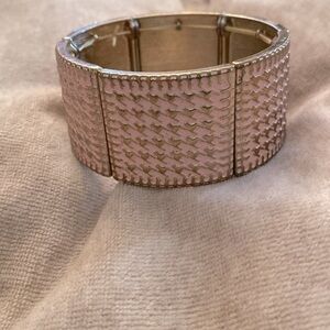 Patterned stretch bracelet in light pink and gold tone plating. Without stretch, interior diameter is 5cm.