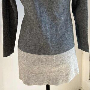 Paul Costelloe’s Black Label turns knitwear into quiet luxury: a longline, shawl-collar wrap with an adjustable pin-buckle side tab that cinches the waist just so; the charcoal-to-light-grey colorblock and clean edge finish make it effortless with tailored trousers, leather leggings, or denim for polished minimalism. Mid tight length for a sleek, elongated line.