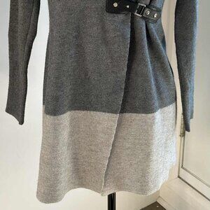 #paulcostelloe #blacklabel #knitblazer #wrapcardigan #belted #pinbuckle #grey #colorblock #longline #minimaliststyle #encorestudio
