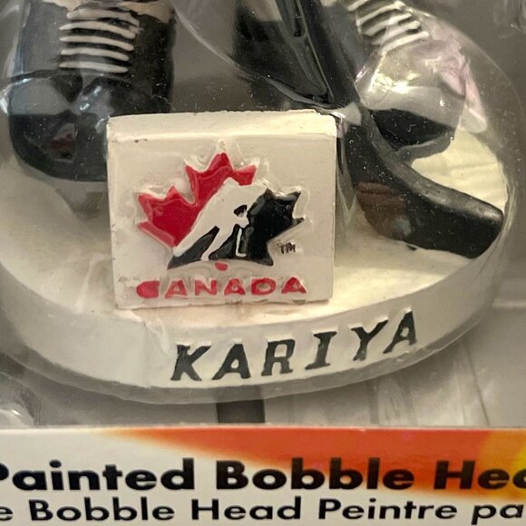 Get your hands on this Paul Kariya hand-painted bobblehead from the Animation In Motion Collectible Series! This vintage collectible, officially licensed by Canada Olympic Team, features the legendary hockey player in his Team Canada jersey from the 2002 Olympics. This original piece is a must-have for any true hockey fan and collector of vintage sports memorabilia. Don't miss your chance to own a piece of hockey history with this one-of-a-kind Paul Kariya bobblehead.