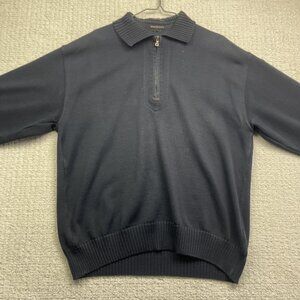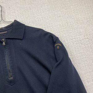 Paul & Shark Pure Wool Sweater Men's Size L Collared Half Zip Jumper Navy Read*