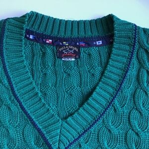 Paul & Shark green cabled V neck cotton pullover Sz XL made in Italy 🇮🇹